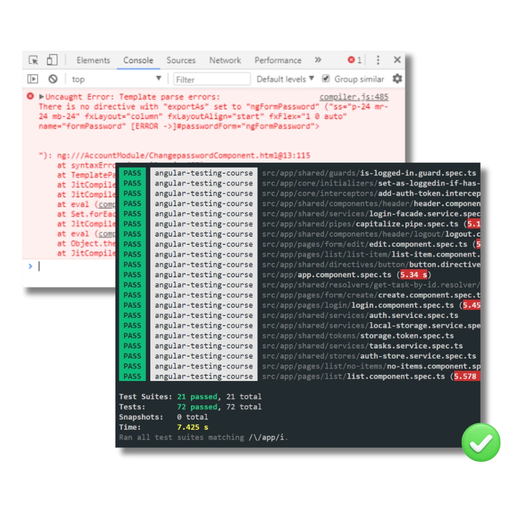 Você entenderá como testar componentes, serviços, diretivas, pipes e muito mais.